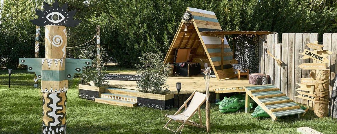 - It has stick figures dressed in tribal garb fashioned of hemp rope carrying lamps with candle-lit slits.