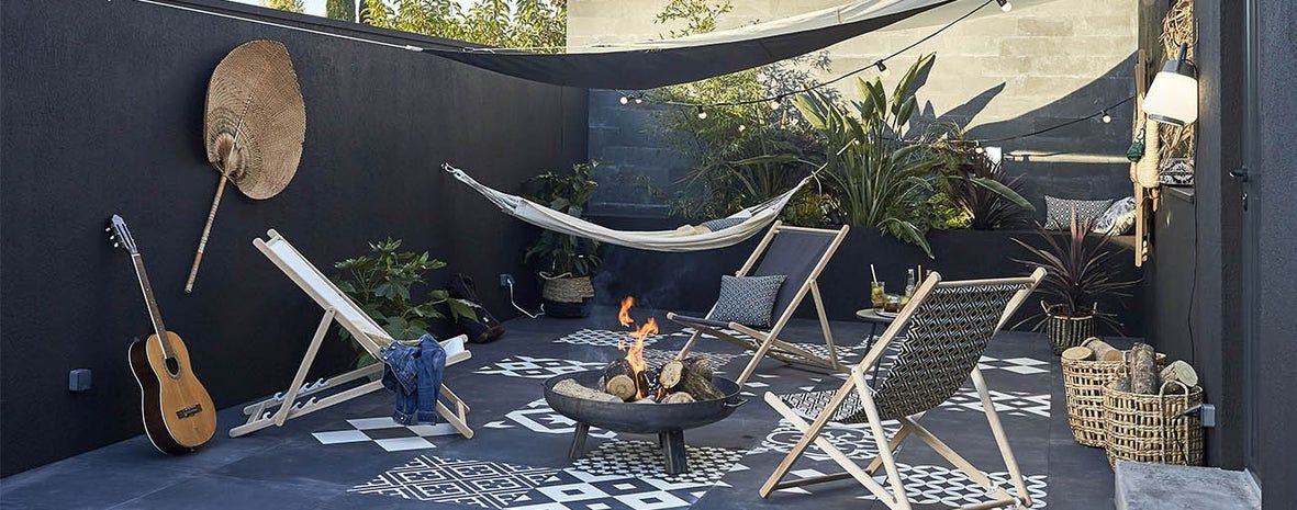 Essential to finalize the layout of the courtyard as an outdoor living room: the lighting. We plan several that we distribute as we would at the show.