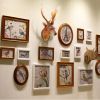 - The sculpture features deer head busts for wall decoration.