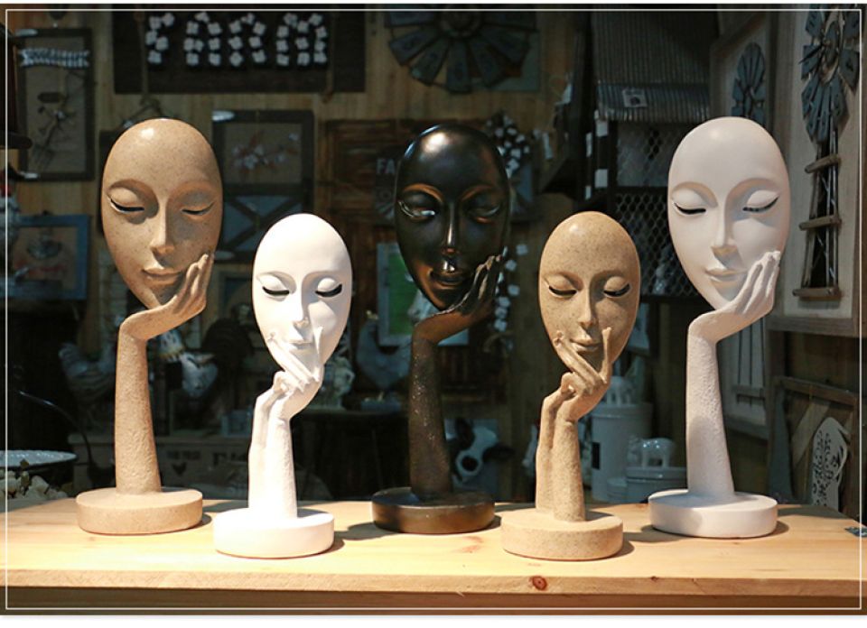 - Abstract Face Mask Table Statue is available in different color and size variations.