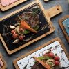 Ceramic Steak Serving Dish with Wooden Tray