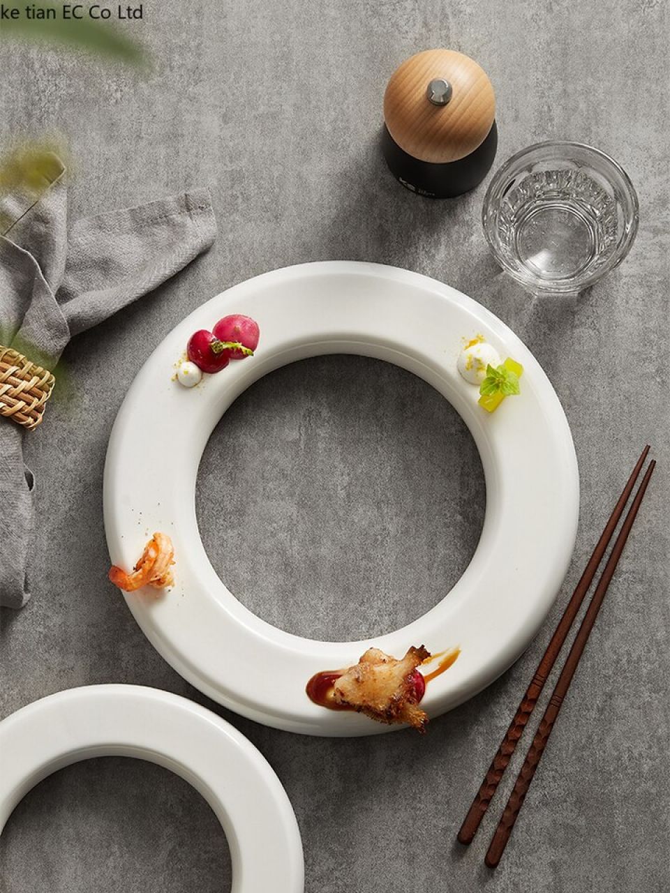 - The Chinese Circle Ceramic Plate has dimensions of  8/10 inch and is a flat plate with an original design