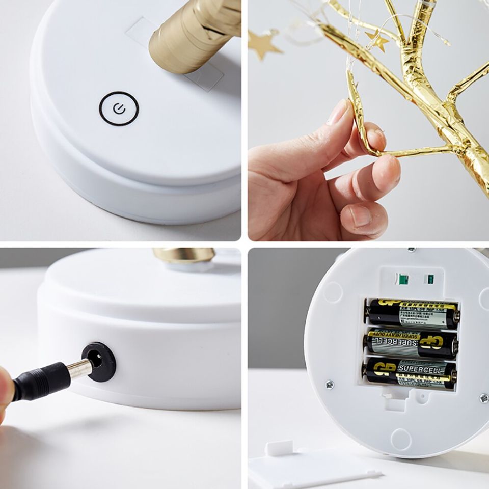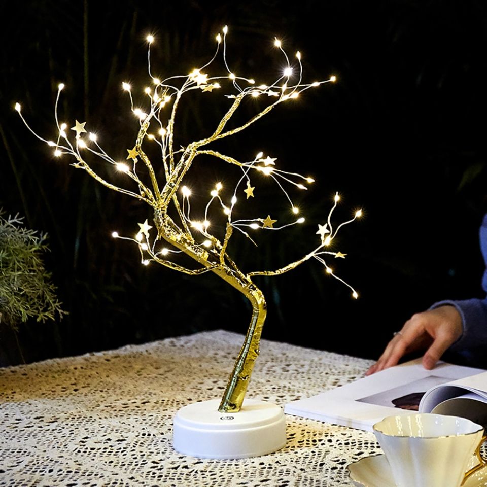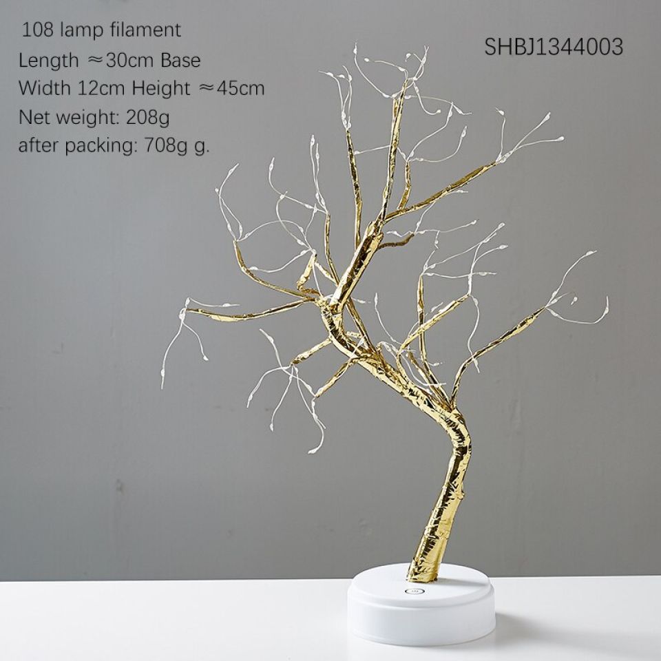 - Light up your space with this festive decor piece featuring a tree-shaped metal lamp.