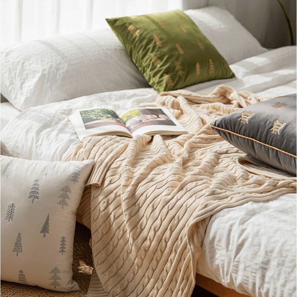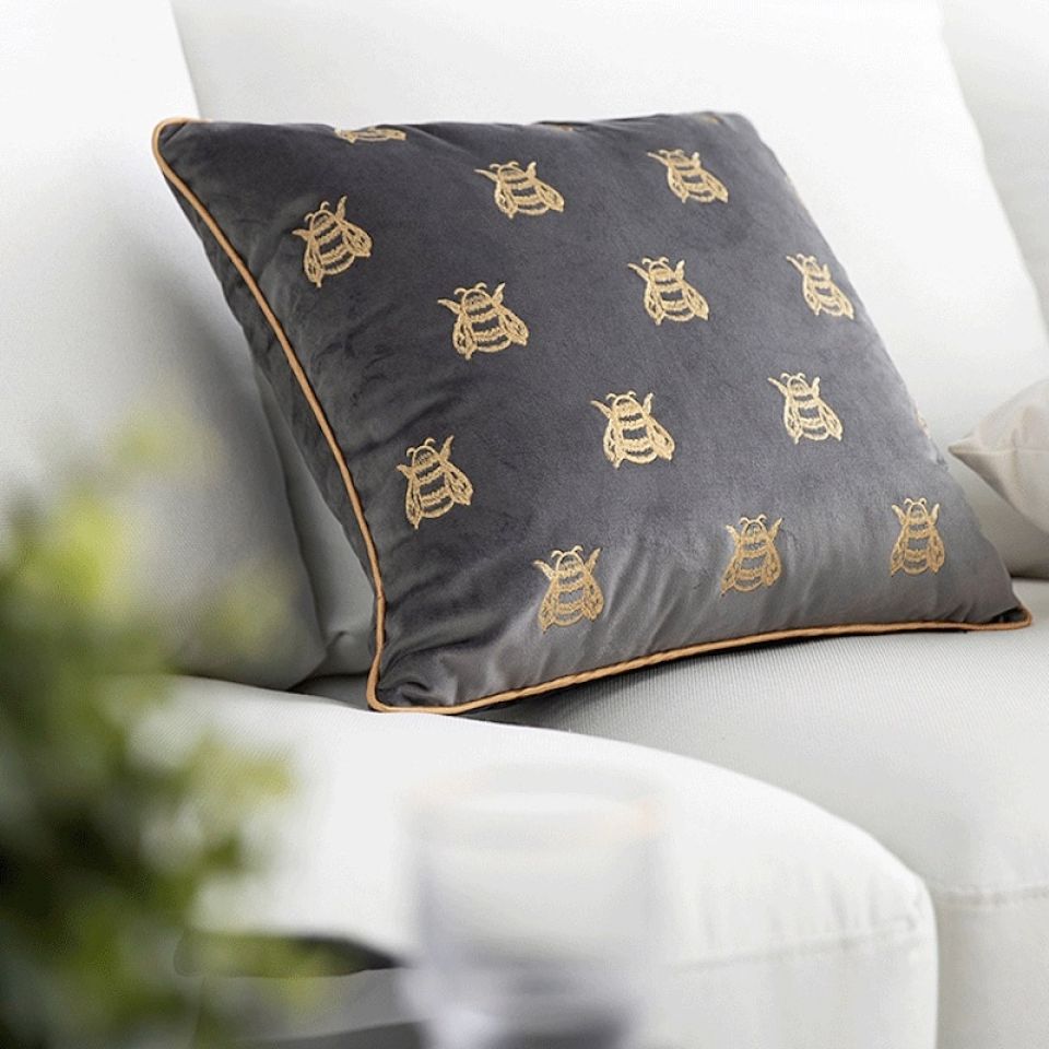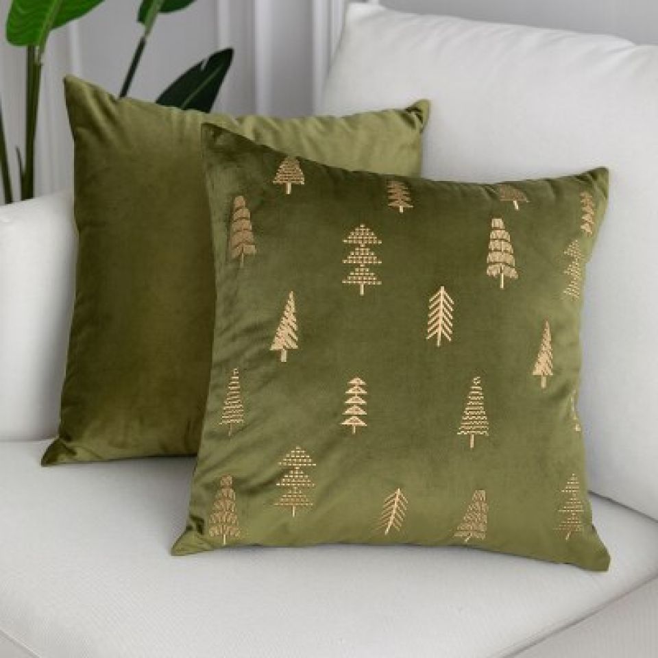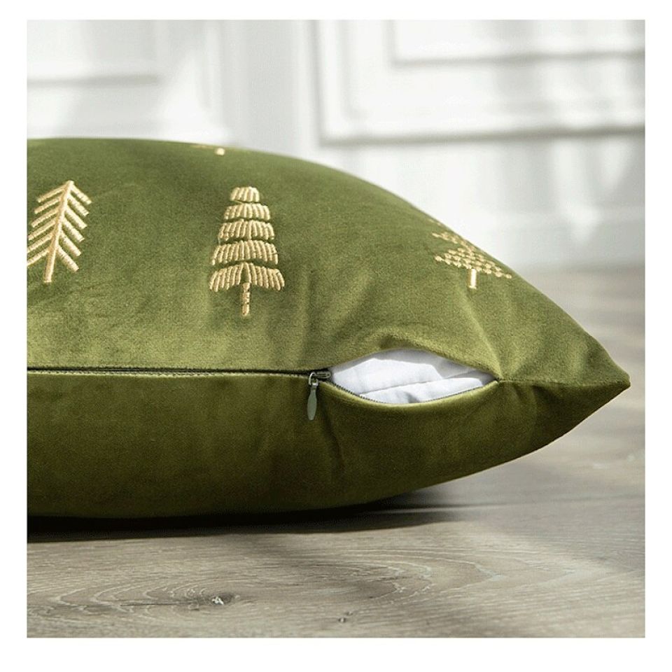 The golden embroidery of Christmas trees and bees is a simple and unusual design.