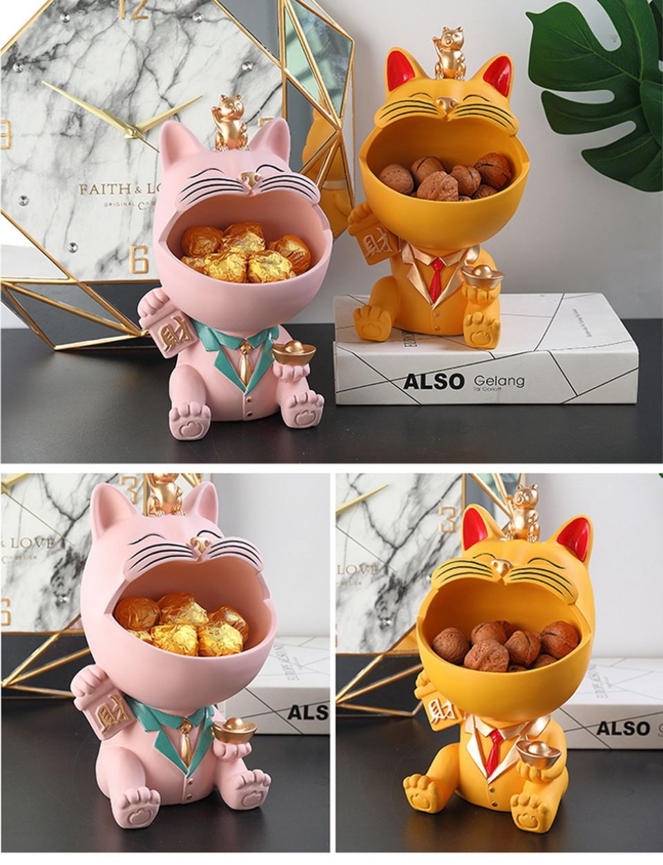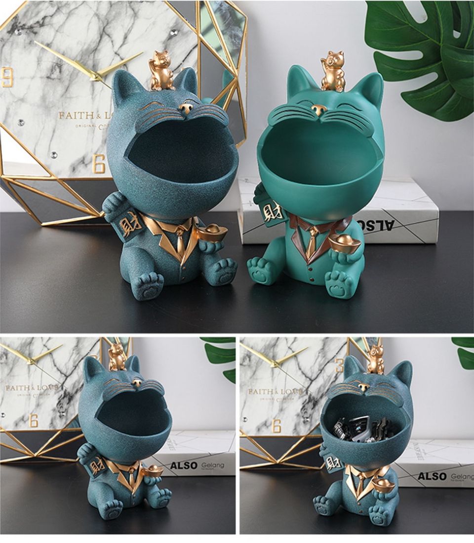 - The design features a cat-shaped open storage box.