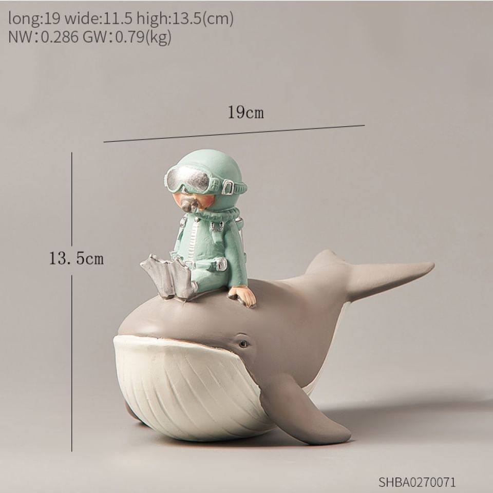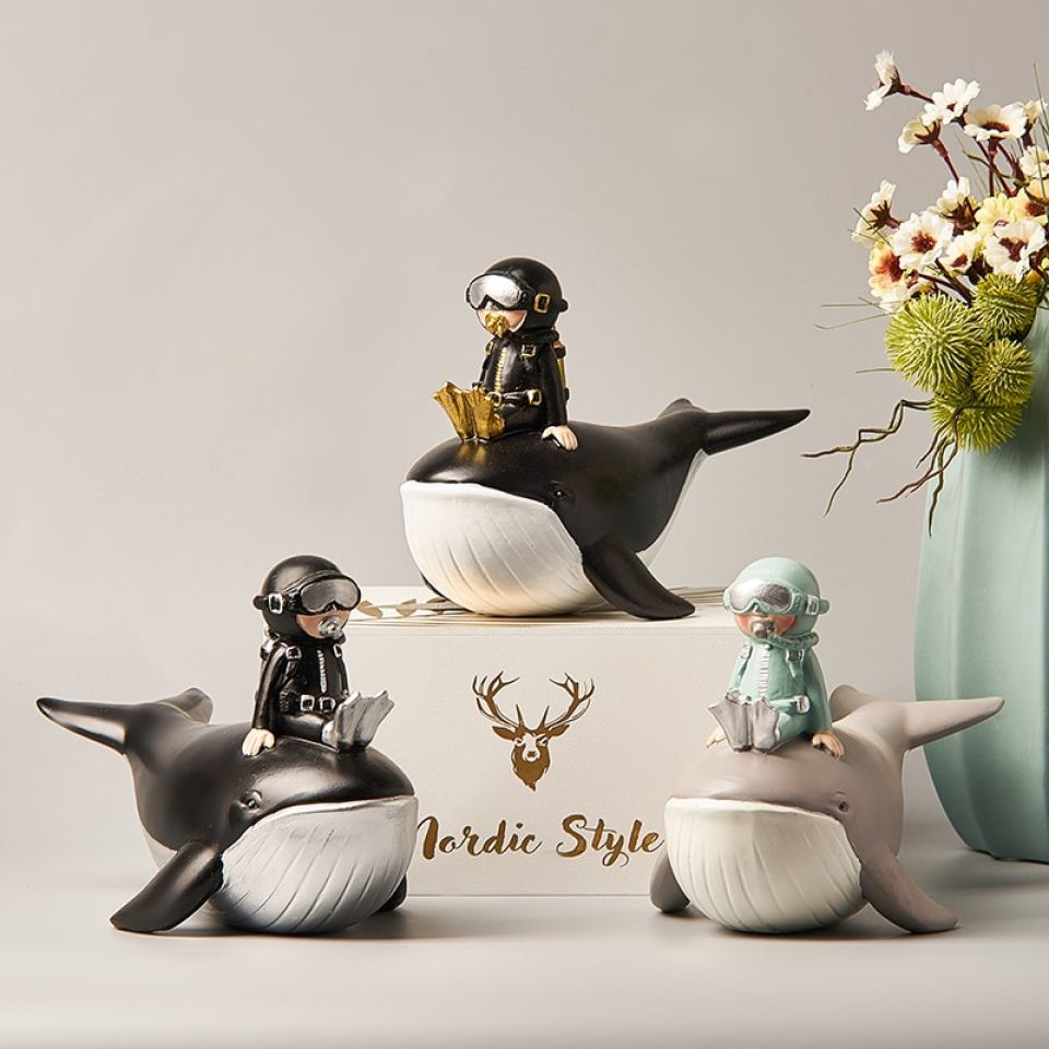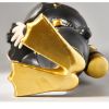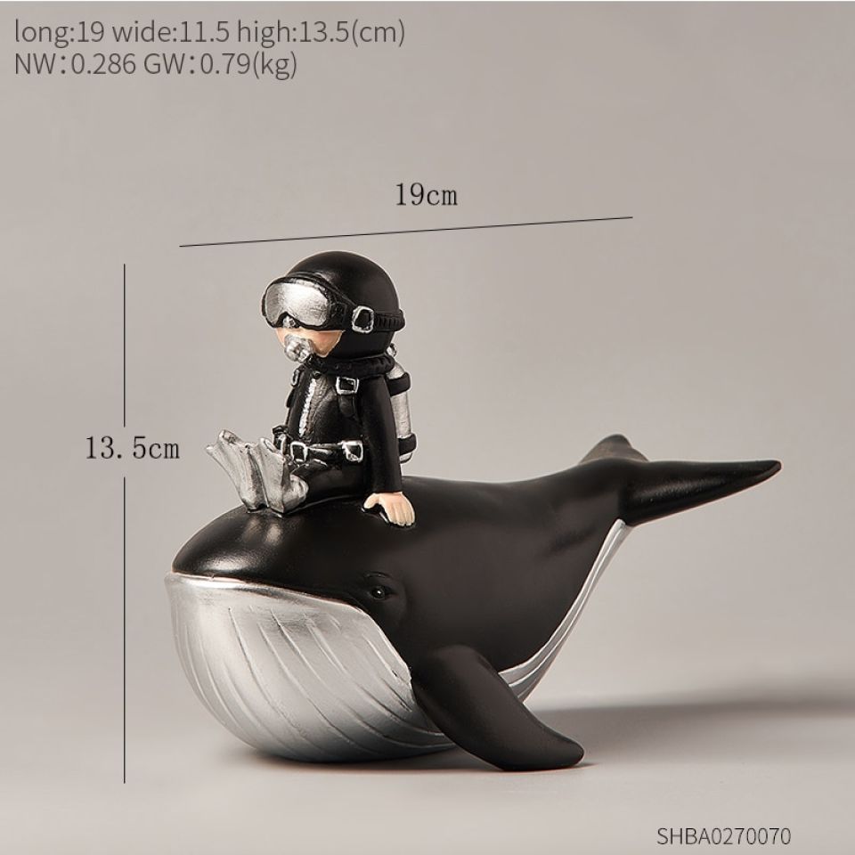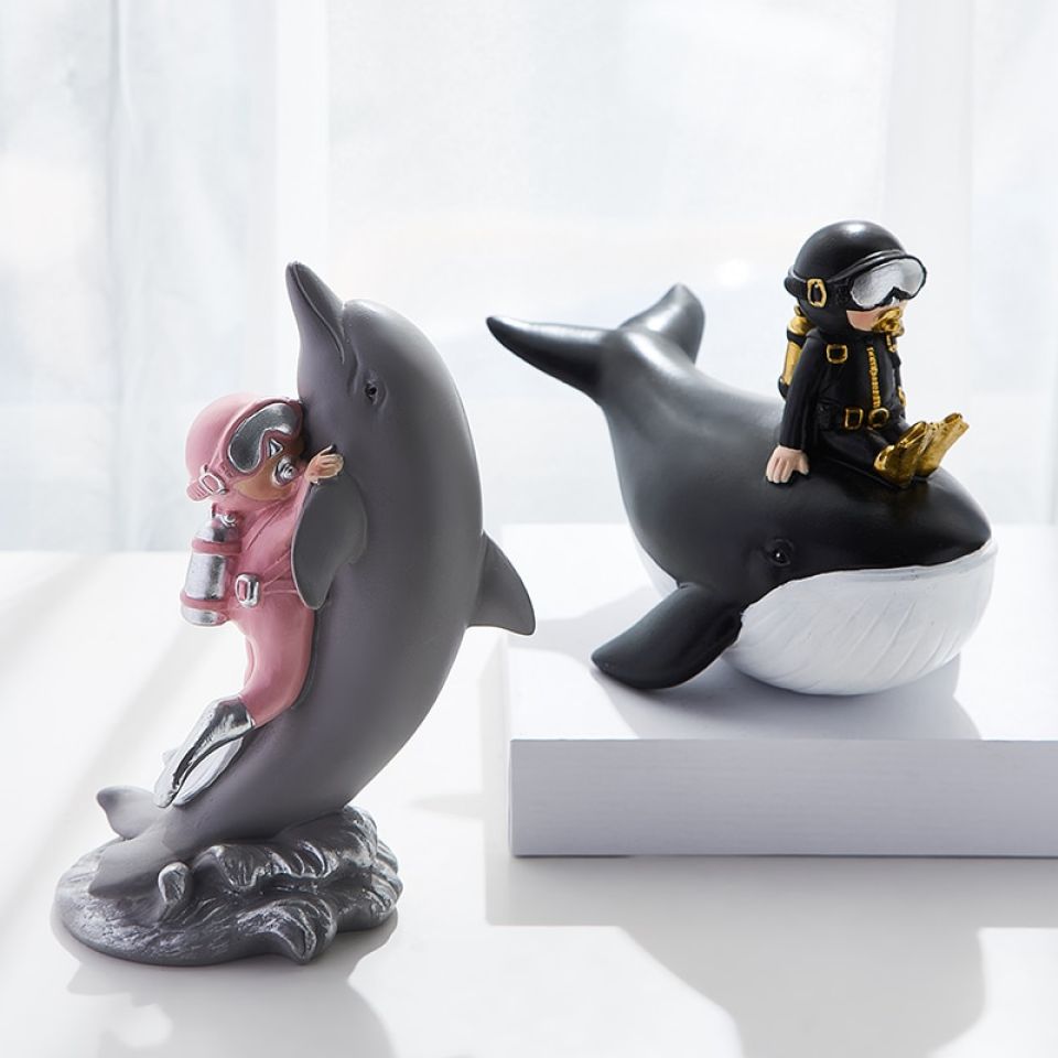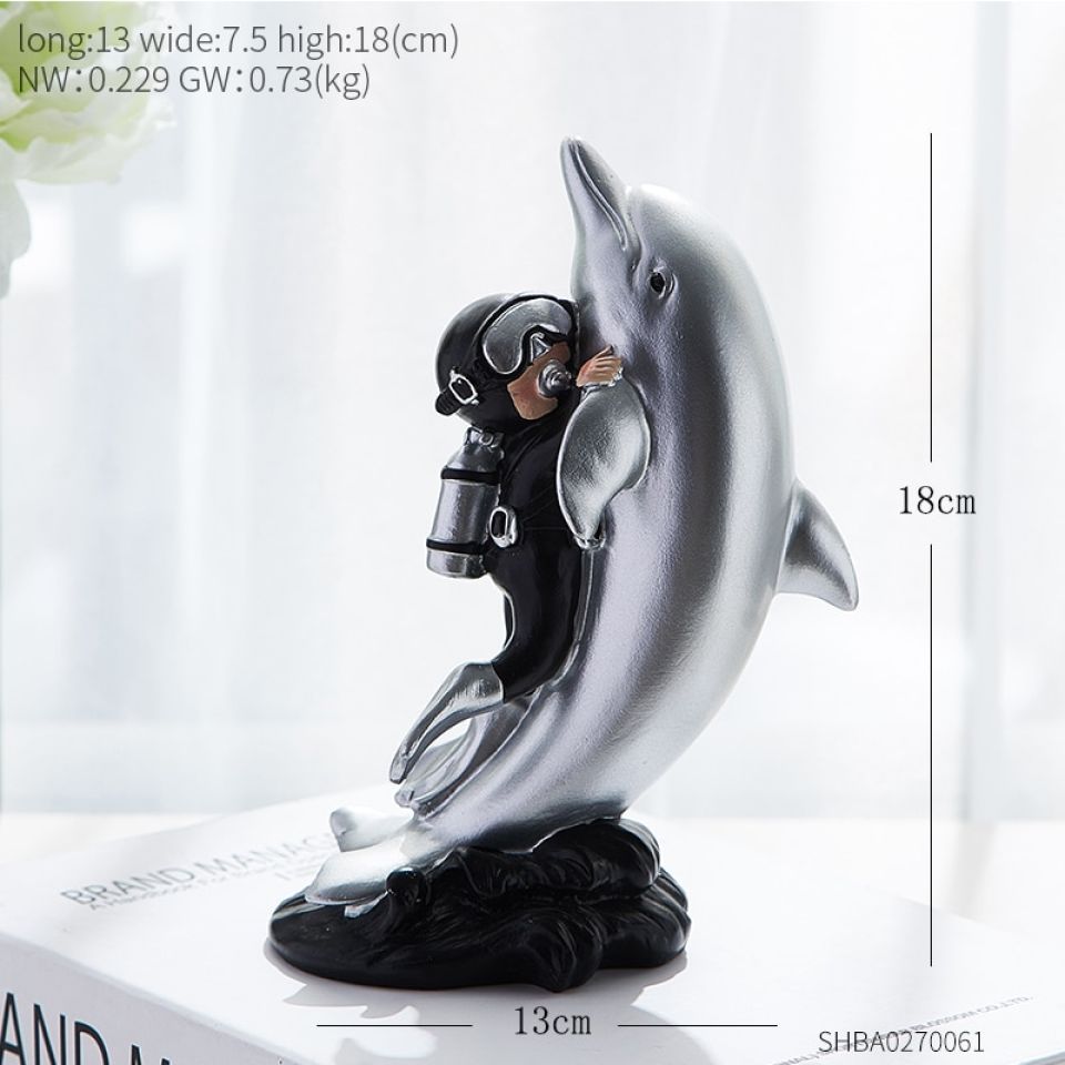 - The design features figurines of divers in a black suit with shiny gold accents.