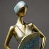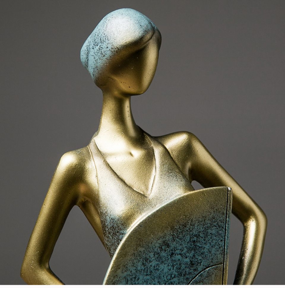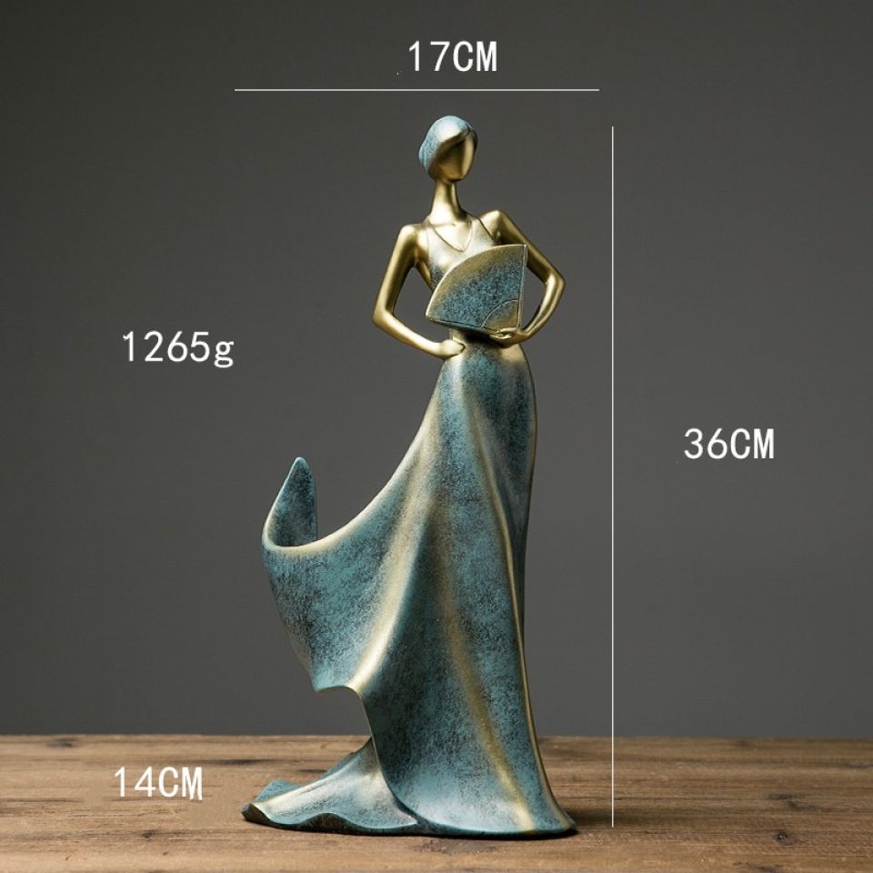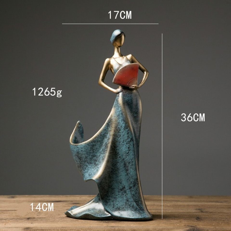 - It has a touch of abstract modernity in its design showcased through the golden bodice with no facial features.