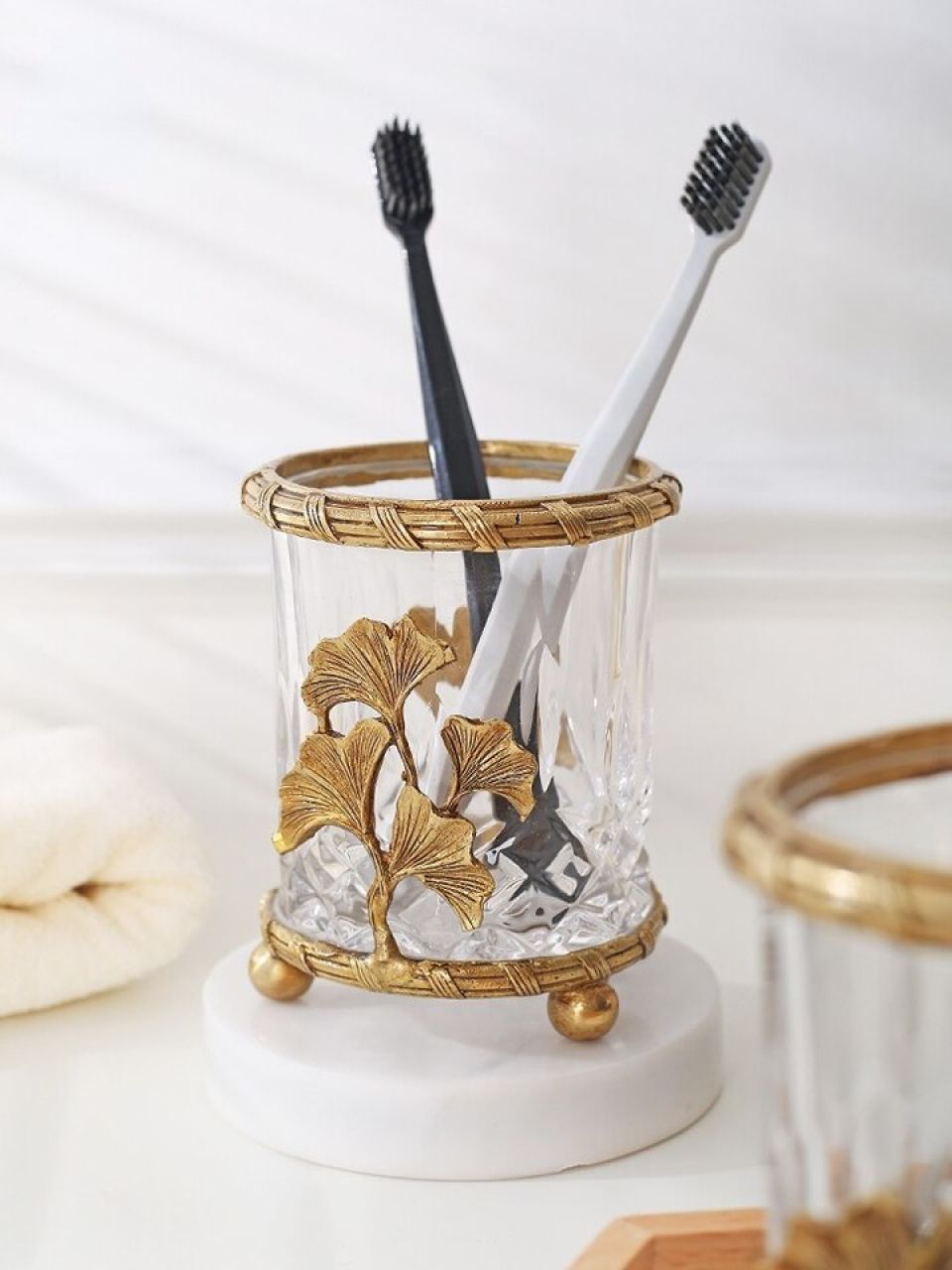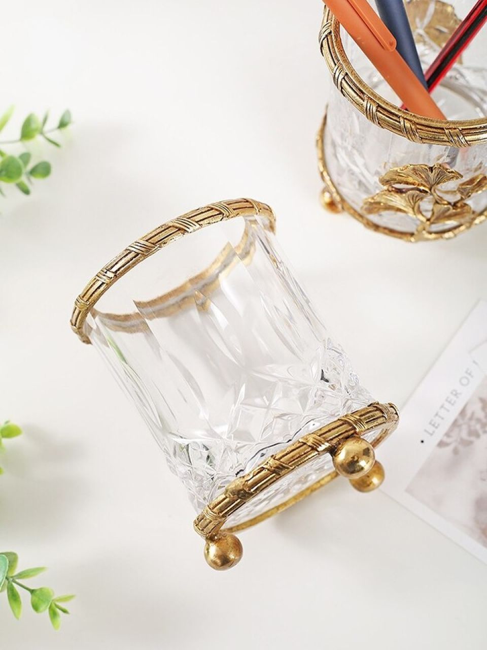 This crystal storage glass has a glint that will catch your eyes from far away. Designed with a European style and with a blend of tradition and embellishments to it, one can use it to store a lot of household things. The golden vines growing on the side are a beauty to look at.