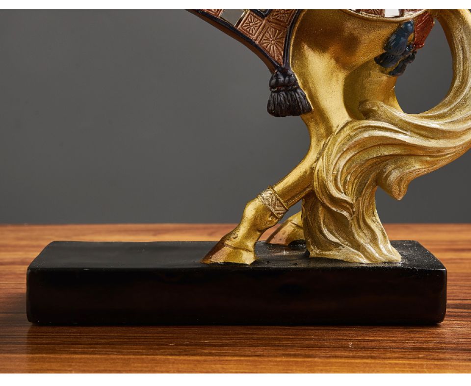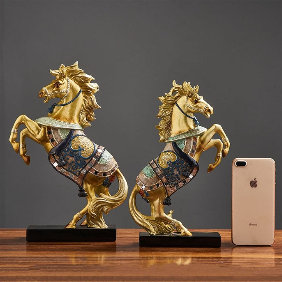 - This piece features a classic horse sculpture in a brilliant golden shade.