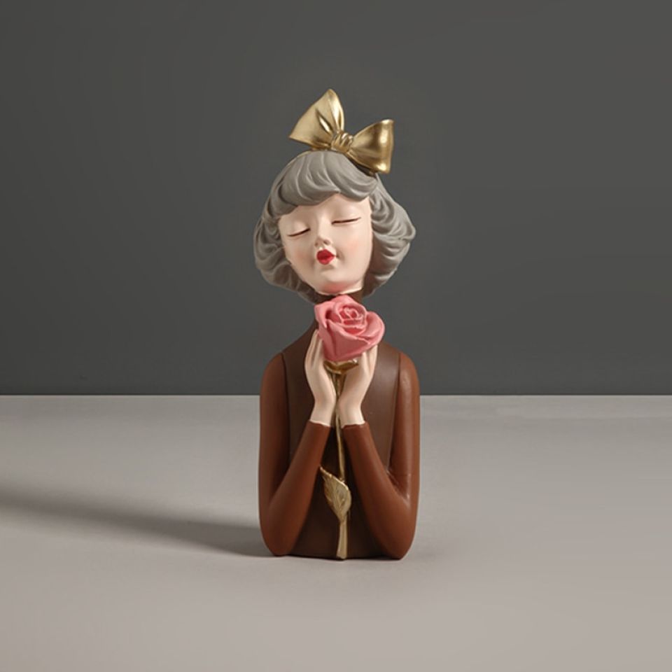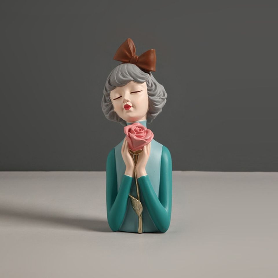 - It features a figurine of a beautiful girl mesmerized in the aroma of the flowers.