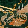 The forest green is a royal color. It looks like the color of royalty and lives up to those expectations. It is the perfect base for the intricate designs on it.