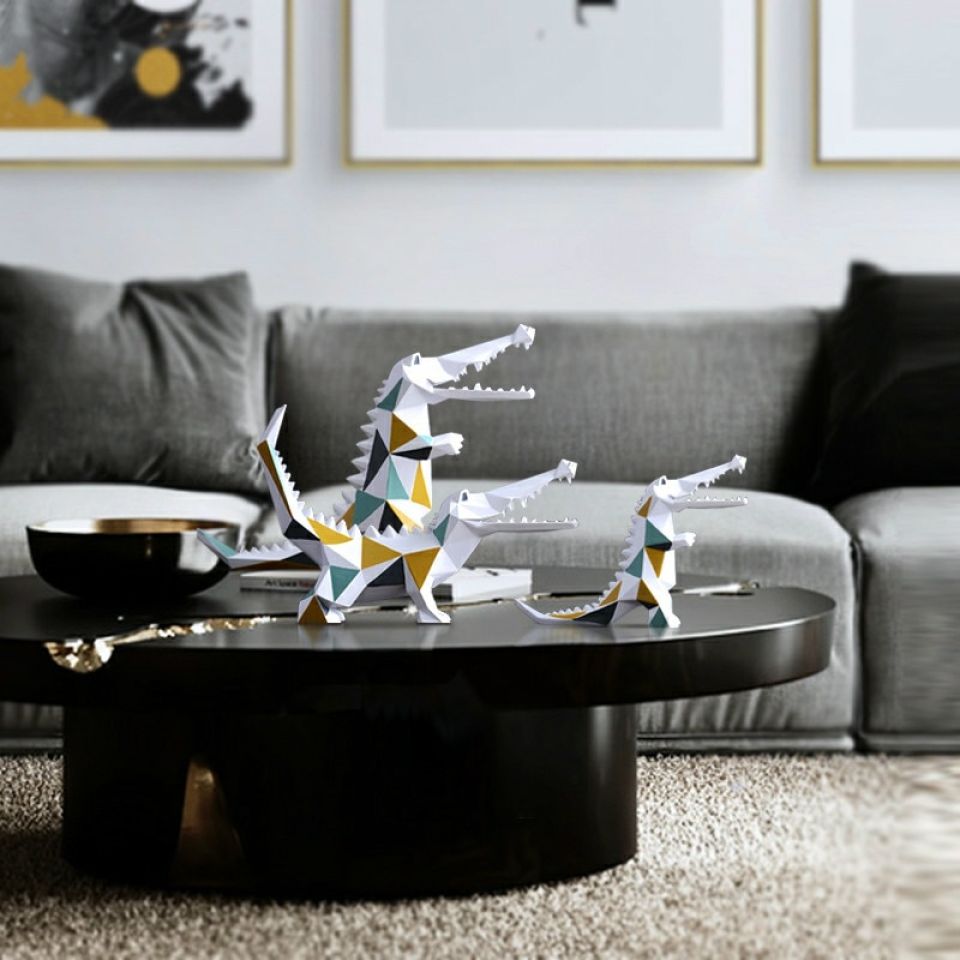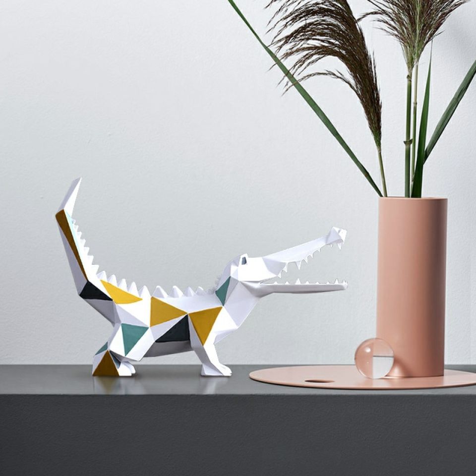 - Geometric Crocodile Figurine can be used to amplify the ambiance of offices, living rooms, and your kids’ room.