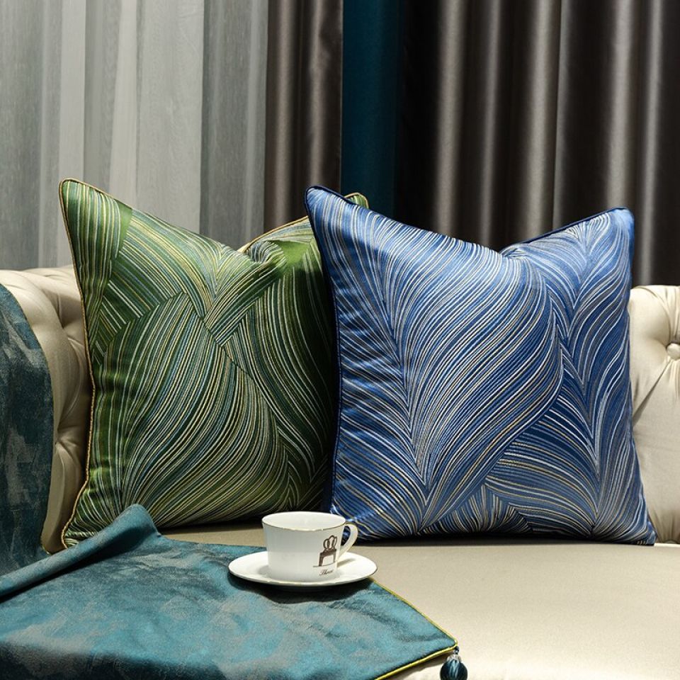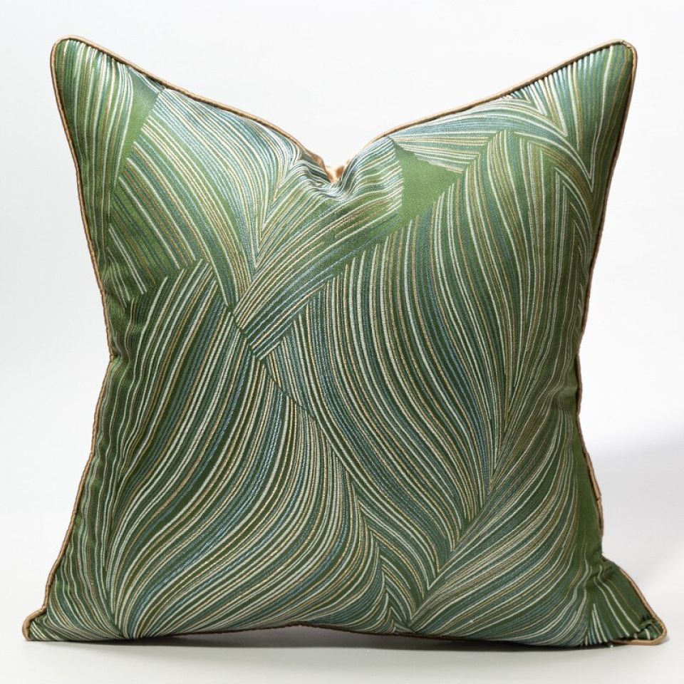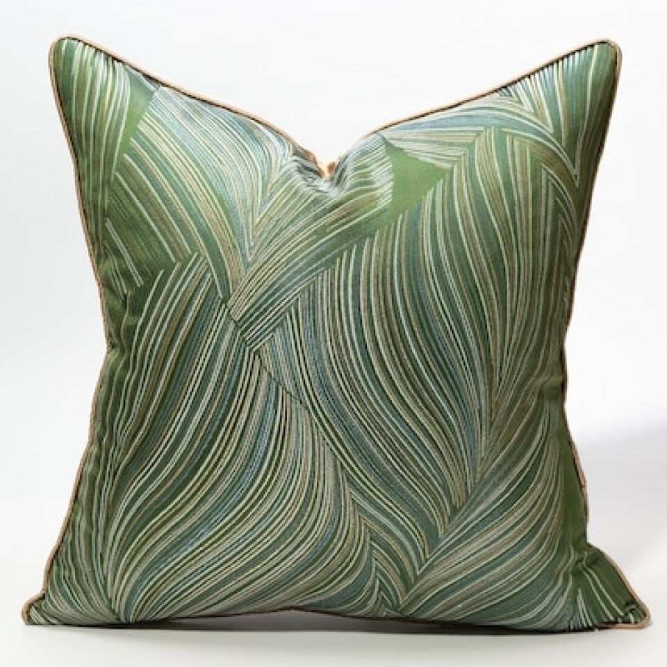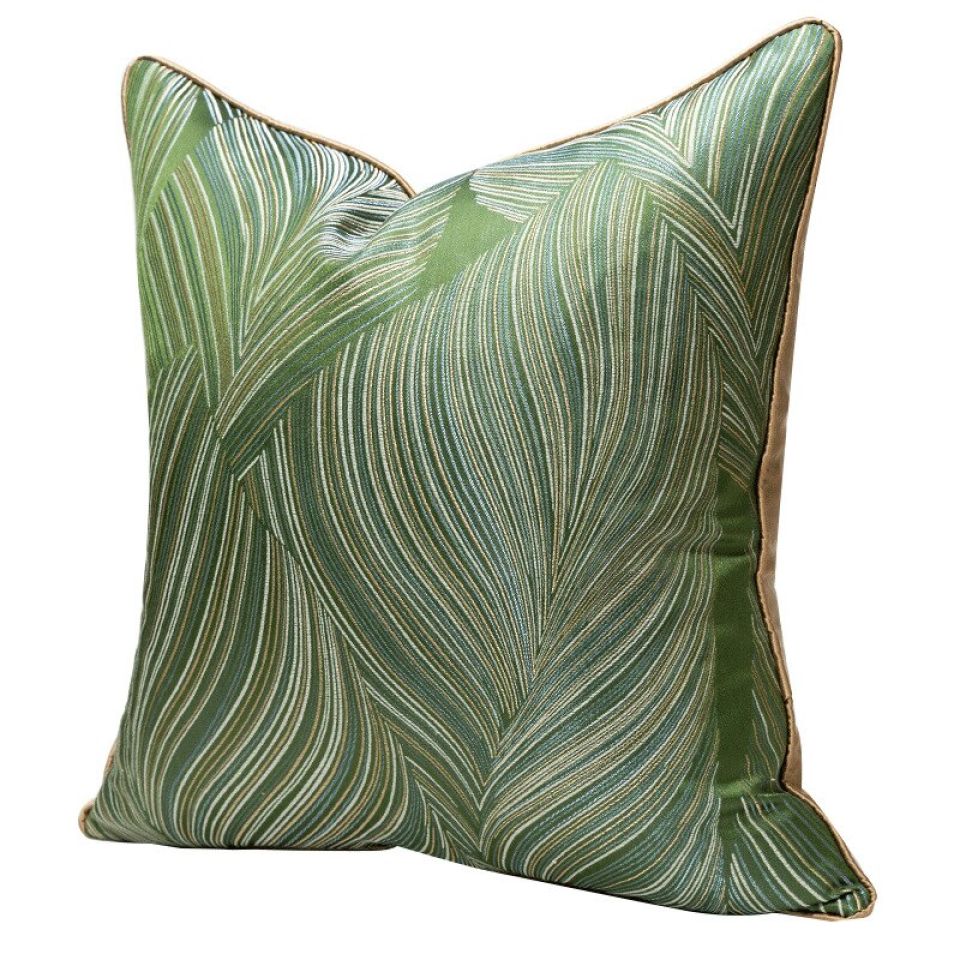 The pattern of the geometric lines gives the illusion of leaves. The stitched lines provide the cushion cover surface a texture.