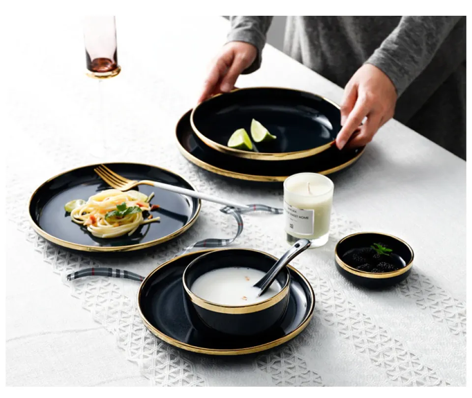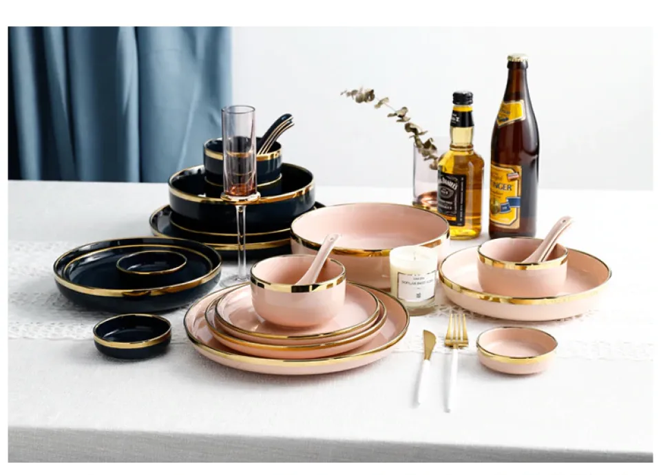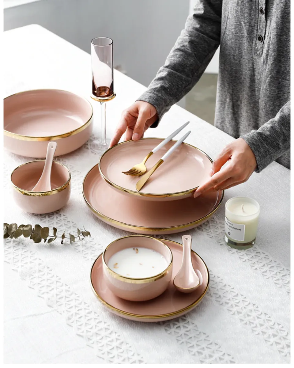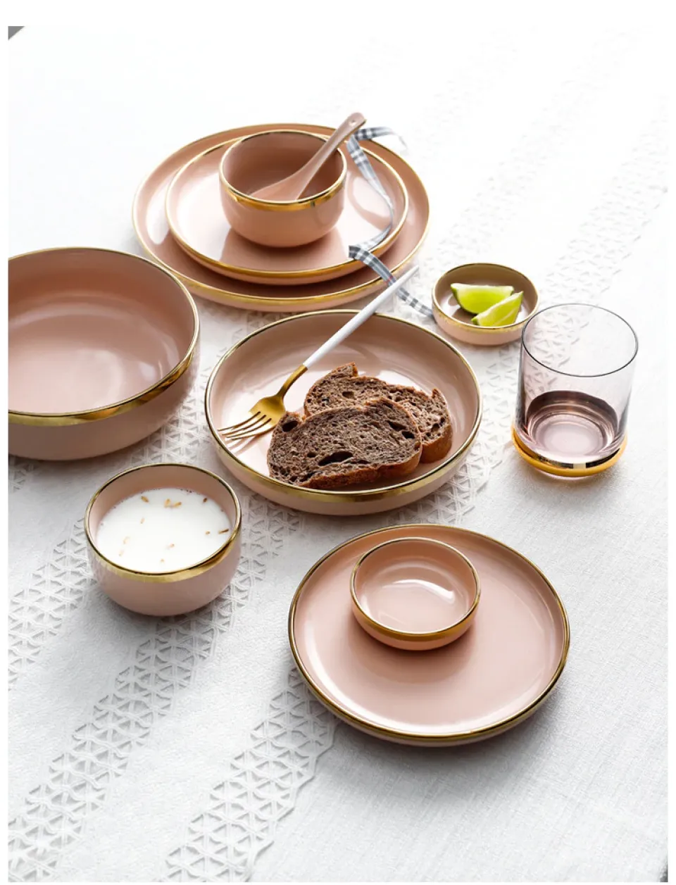 Item Name | Pink Blakc Gold Stroke Ceramic dinner Plate Tableware Porcelain bulk Serving Dishes Plate Home Wedding Decorative Dinnerware |