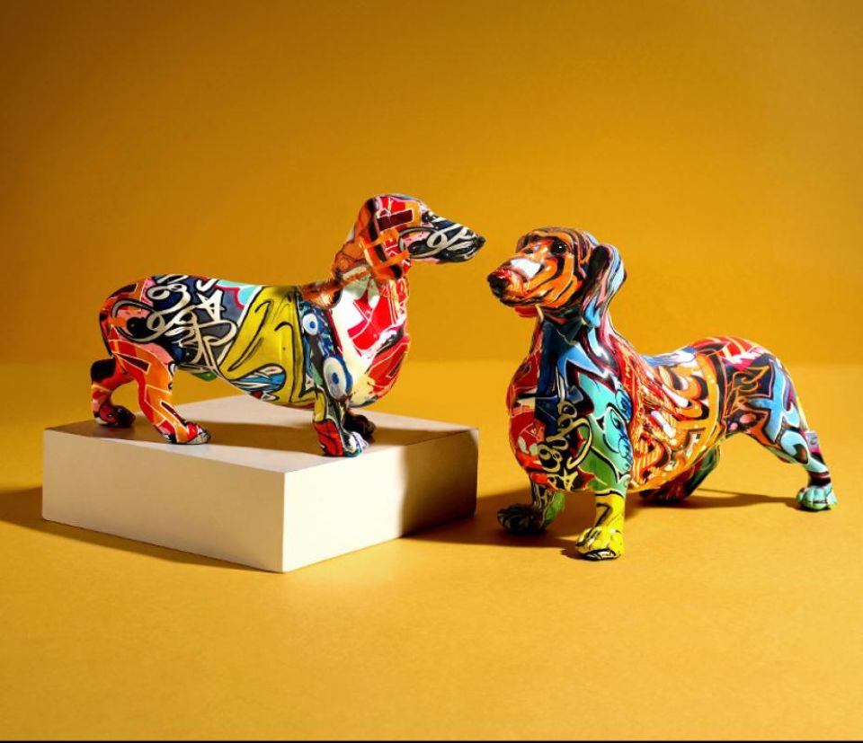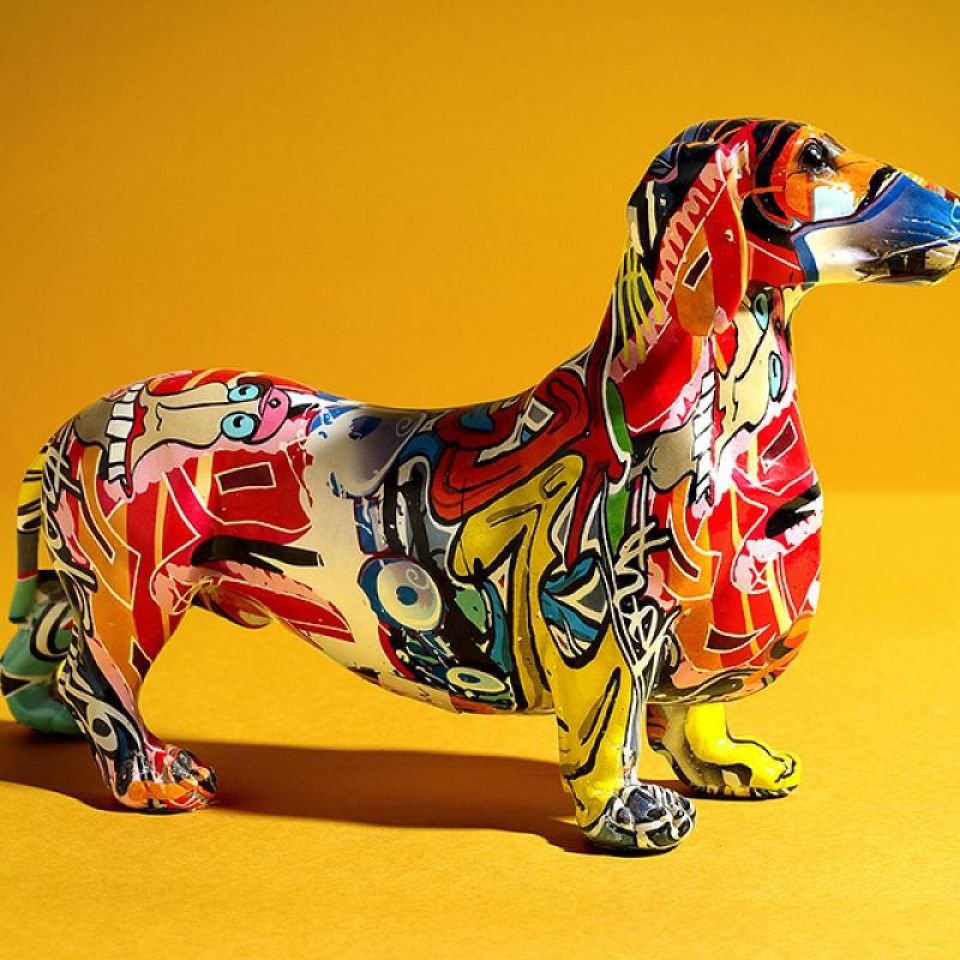 - The modern piece features an abstract dog sculpture with graffiti design skin all over its body.