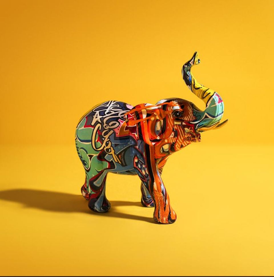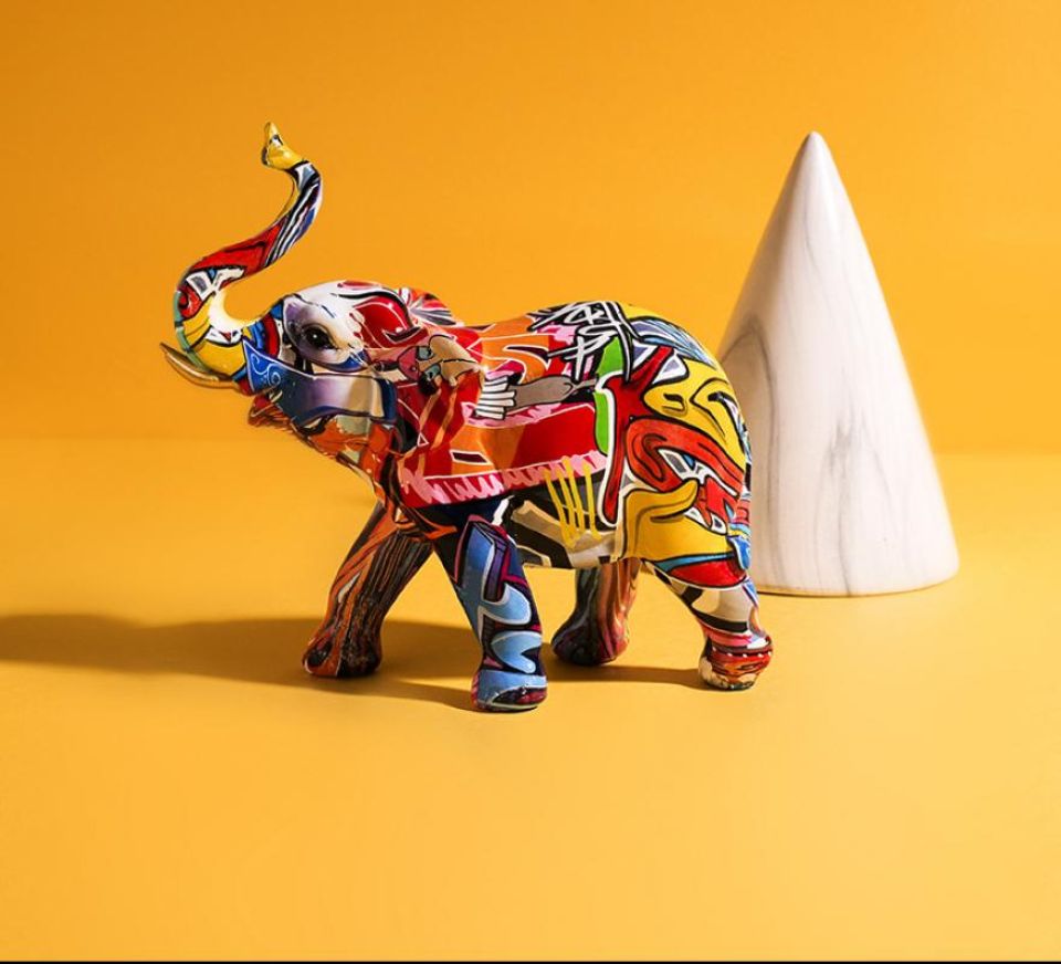 - The modern piece features an abstract Elephant sculpture with graffiti design skin all over its body.