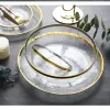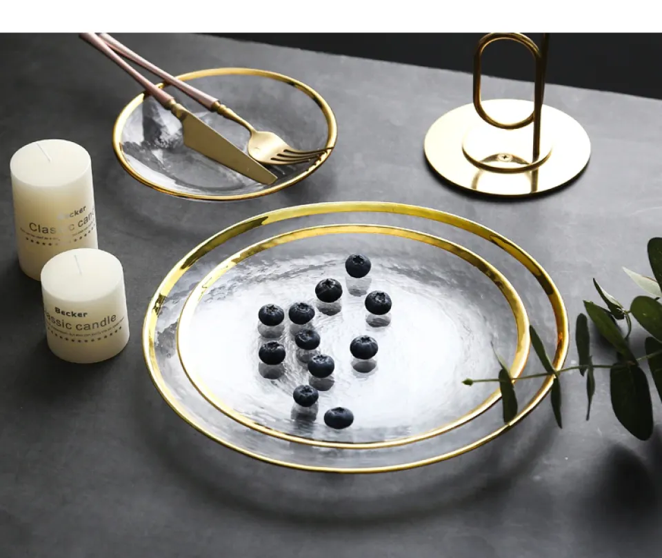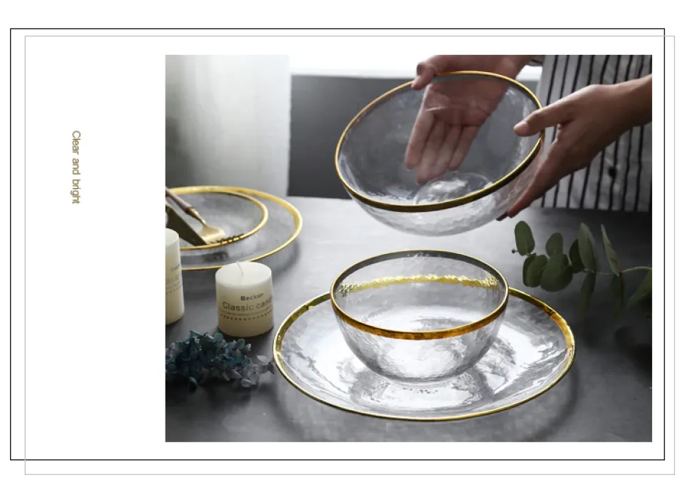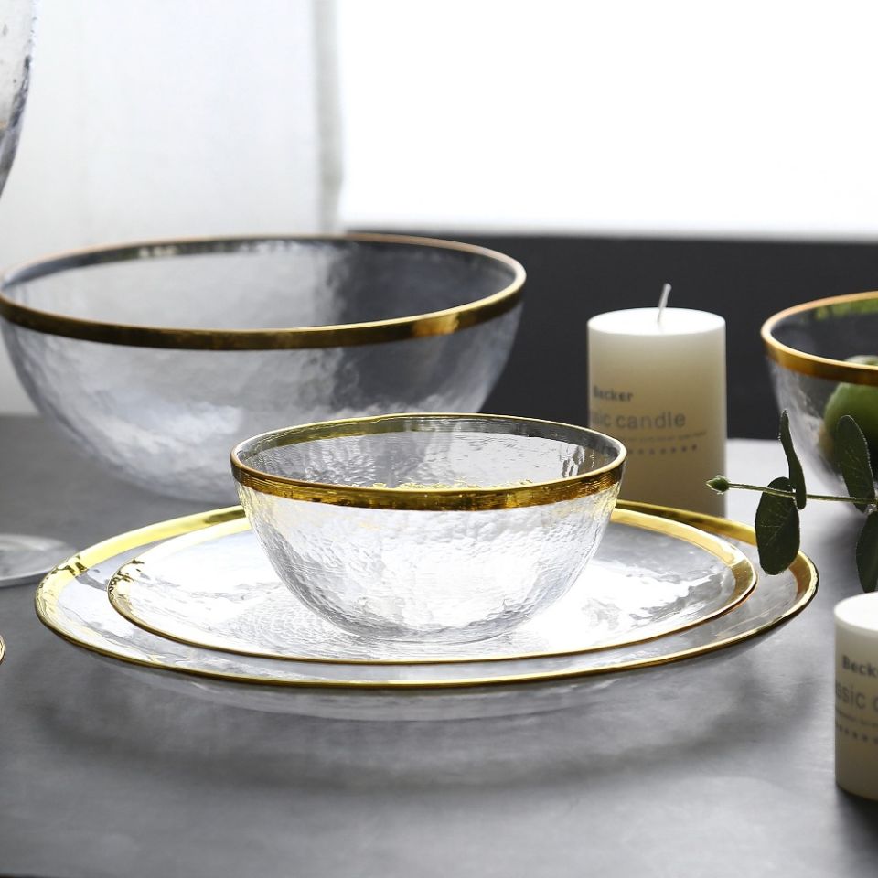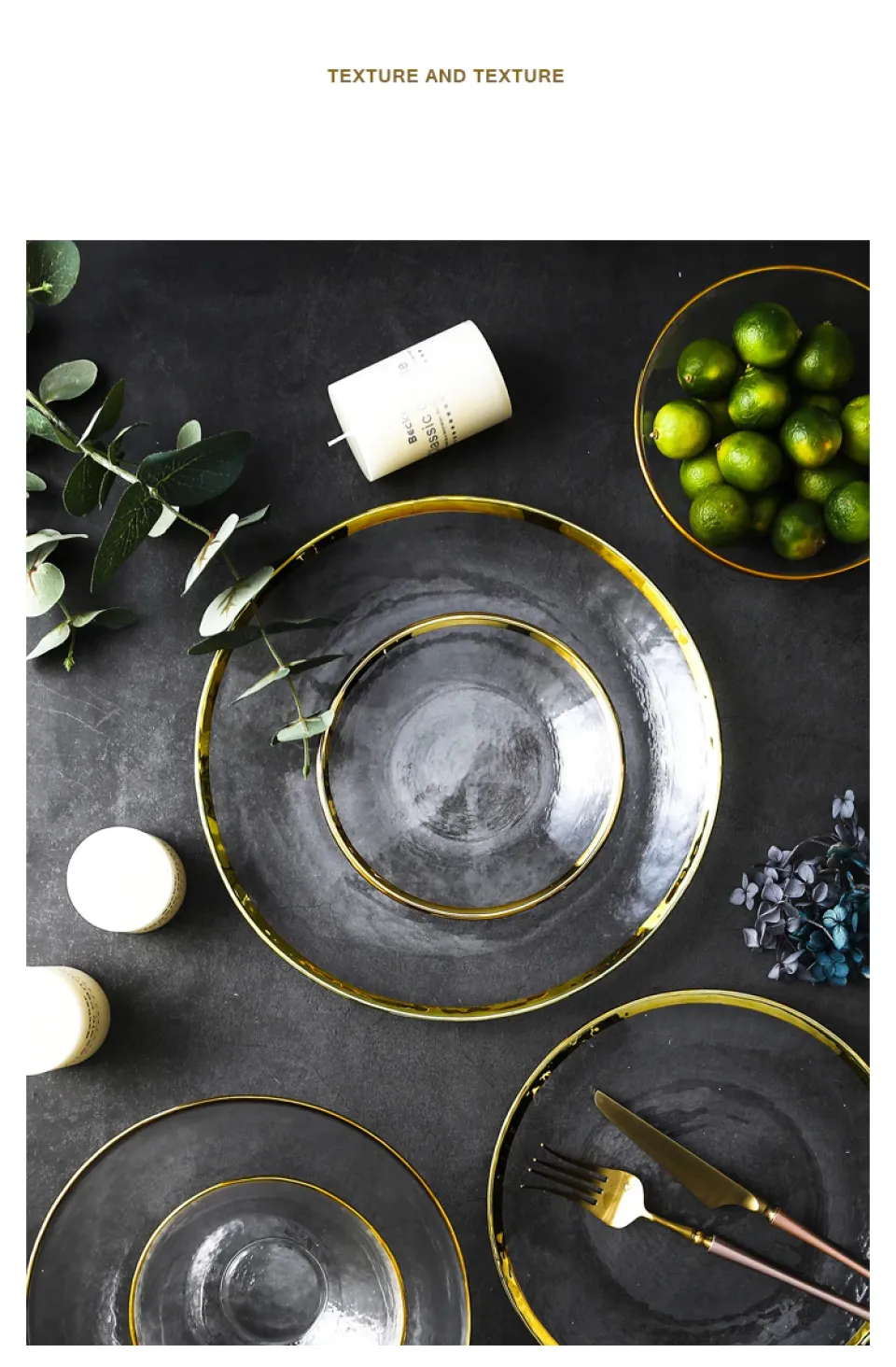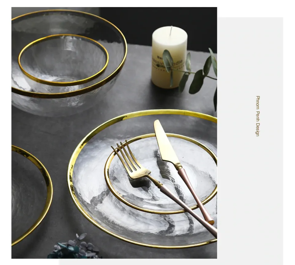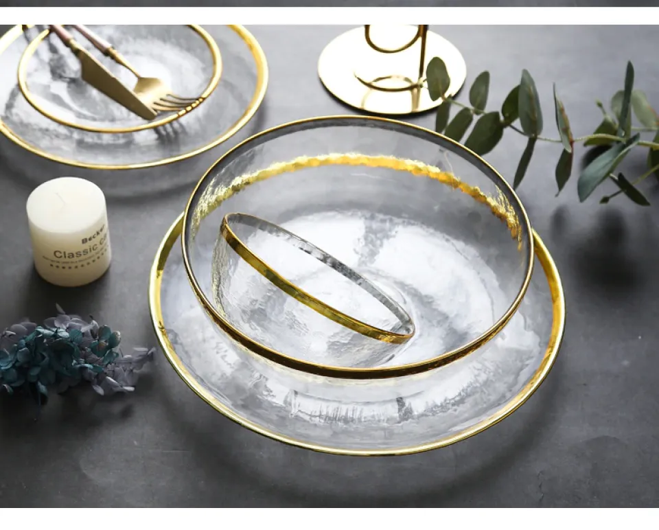 Item Name | 1pc/lot Hand-gilded European Glass Gold Inlay Dishes Steak Plate Salad Soup Bowl Dishes Party Event Decoration Tableware Set |