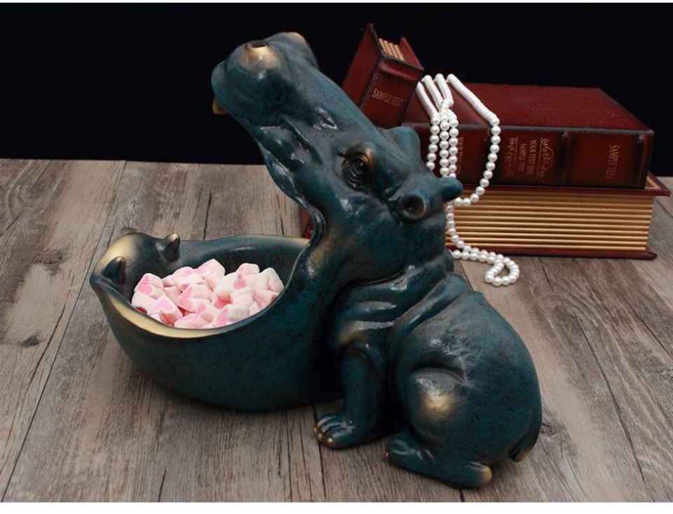 Hippo statue size: 30×16.5×22 cm Sold amount: 1 pcs Material: high quality resin Feature: copyright product,thicken material, weight about1.8kg,so more better and durable than other cheaper similar hippo(weight only about 0.95kg,very thin material);those very cheap similar hippos are piratic products, please attention Package weight: about 1.8kg Function 1: home living room desk decoration Function 2: table / desk storage box Function 3: wedding decoration / party decoration Safe packing: hard carton + foam box Better serive : we offer fast shipping way and good service.if it is damaged, contact us and we will reship a new one or return all money back to you