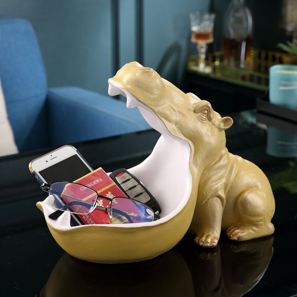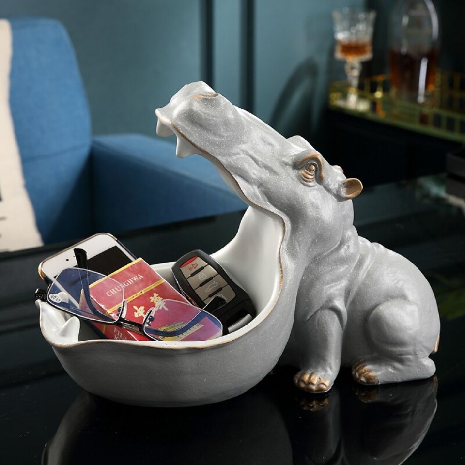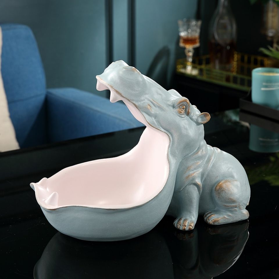 - The design features a hippo-shaped open storage box.