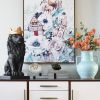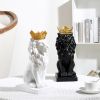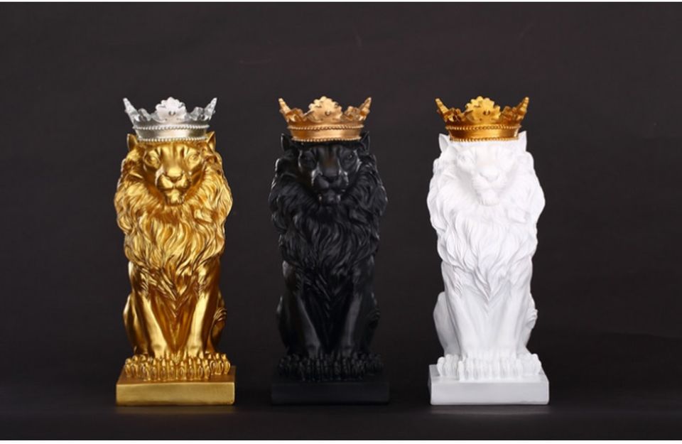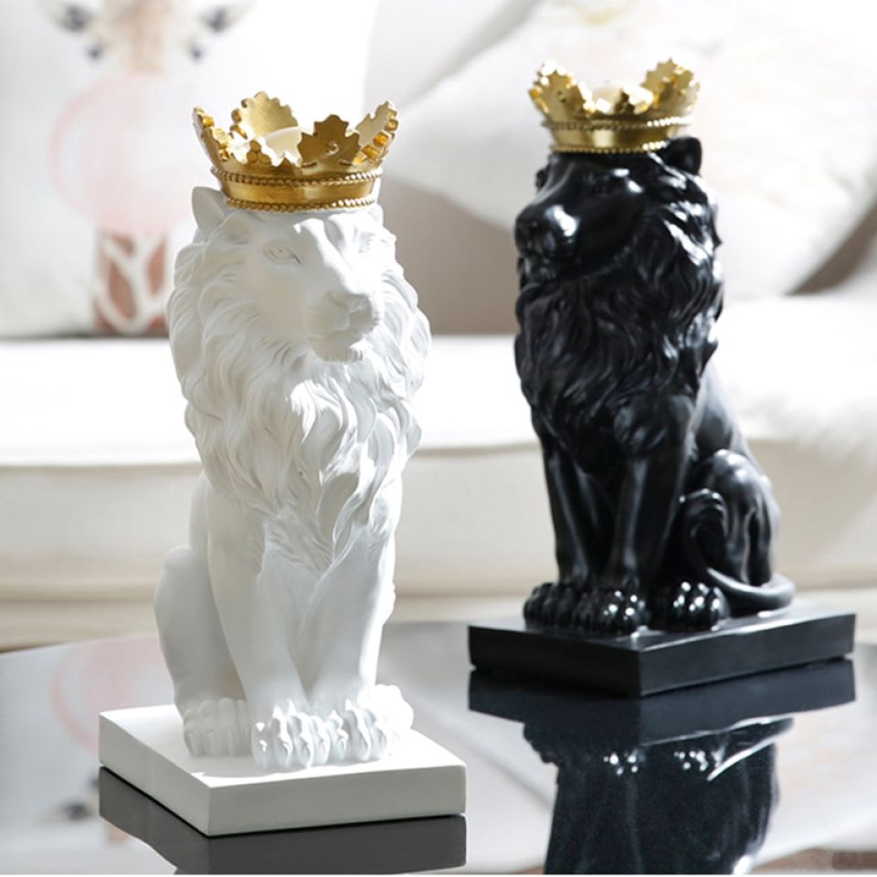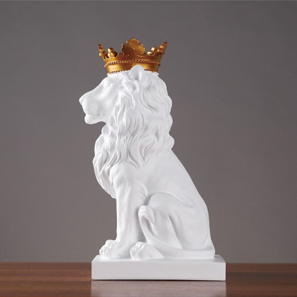 - This decadent piece showcases a monochromatic statue of a lion wearing a crown.