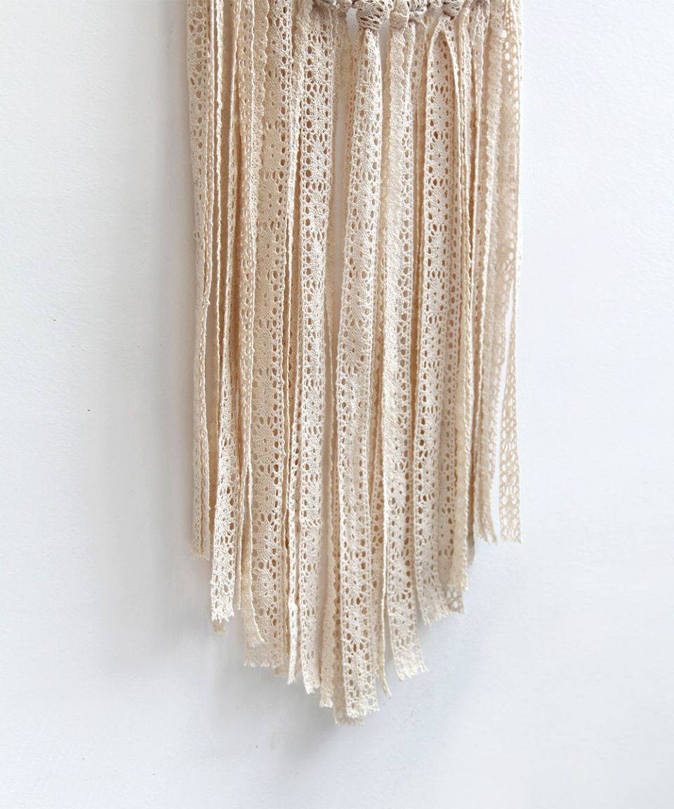 - Made with 4mm natural cotton cord, these bohemian inspired macrame wall hangings have been weaved, woven and knotted into an intricate pattern detailing a mix of shapes and textured delight.