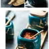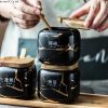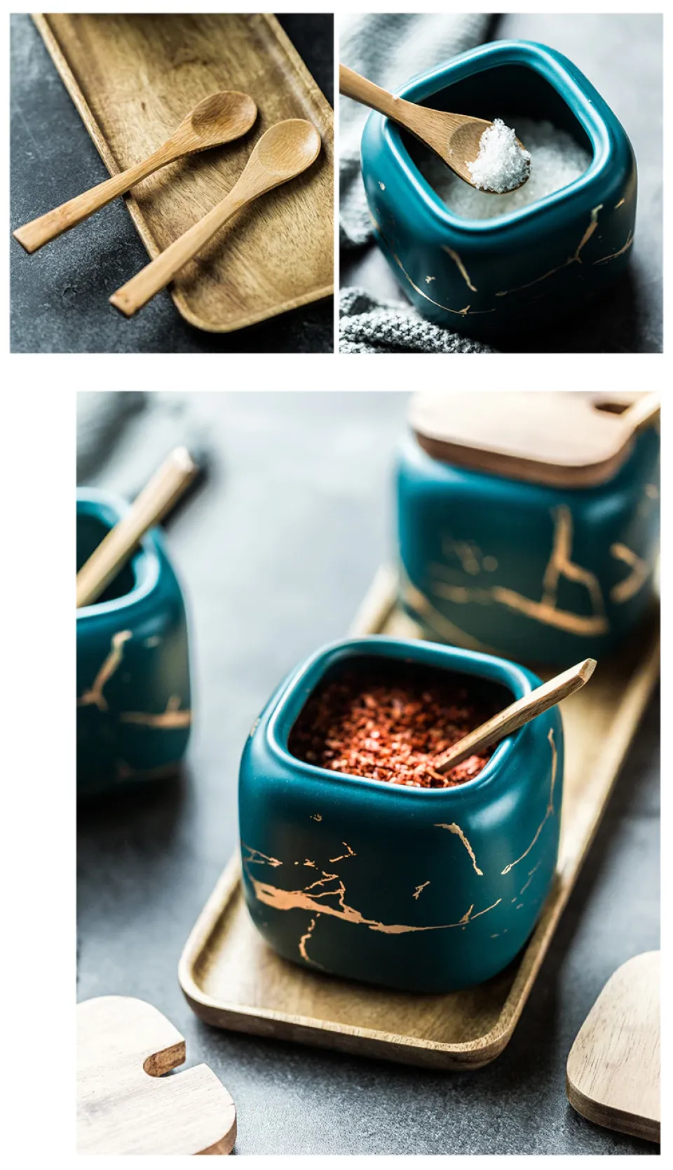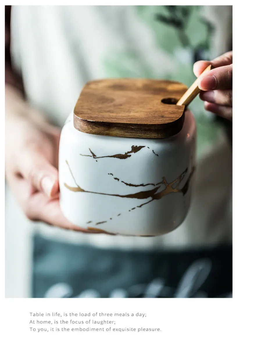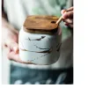 - A set of simple windy seasoning jars, ceramic feels warm and delicate, bamboo wood is simple and beautiful