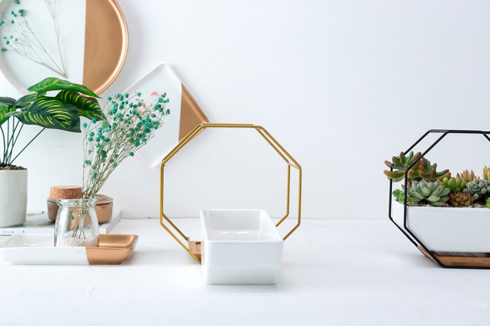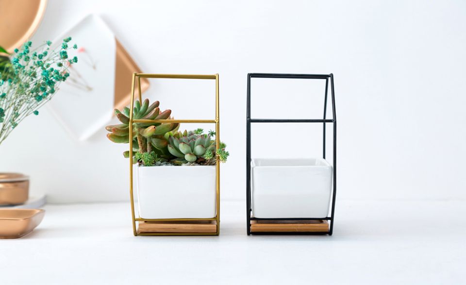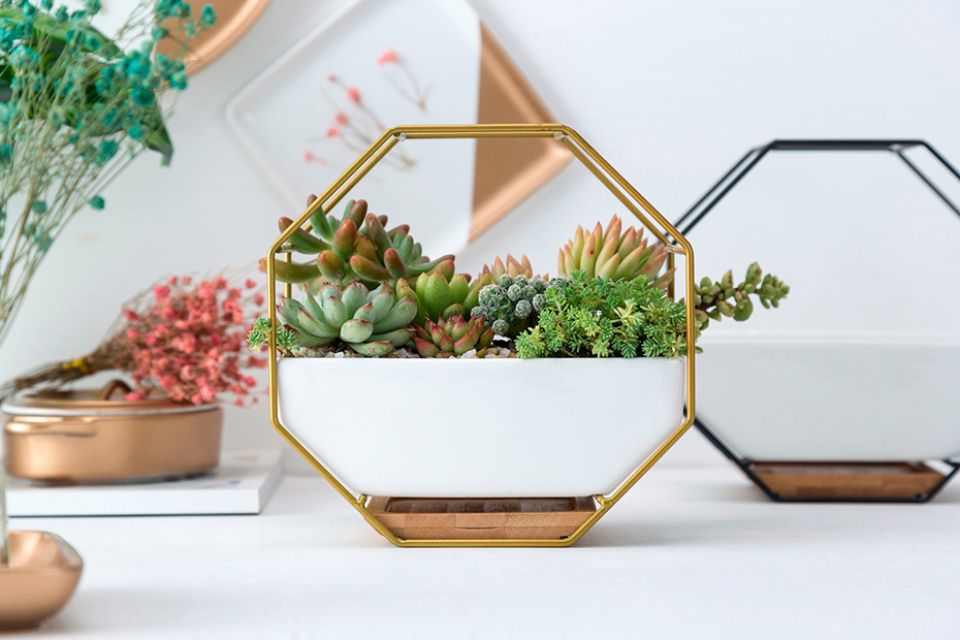 Octagonal Metal Rack With Ceramic Planter
