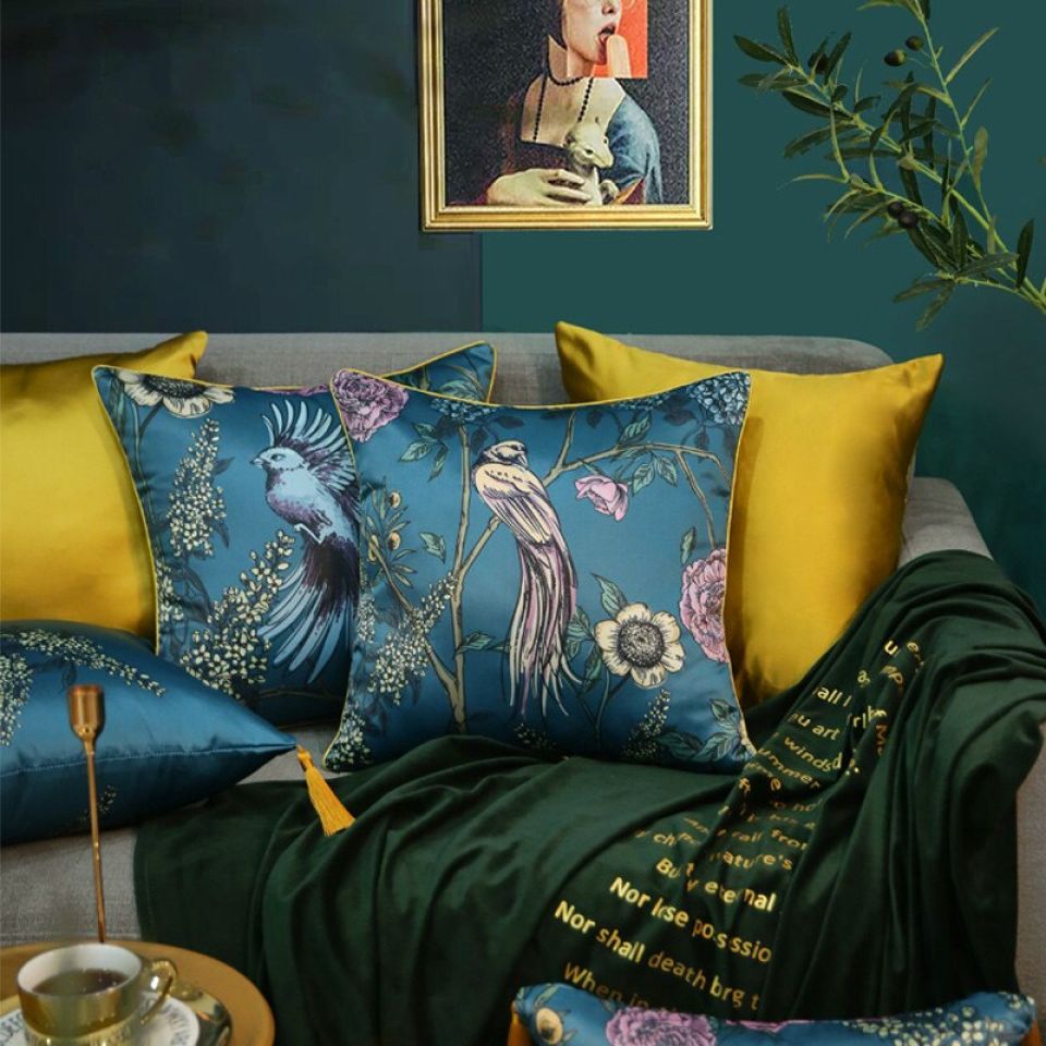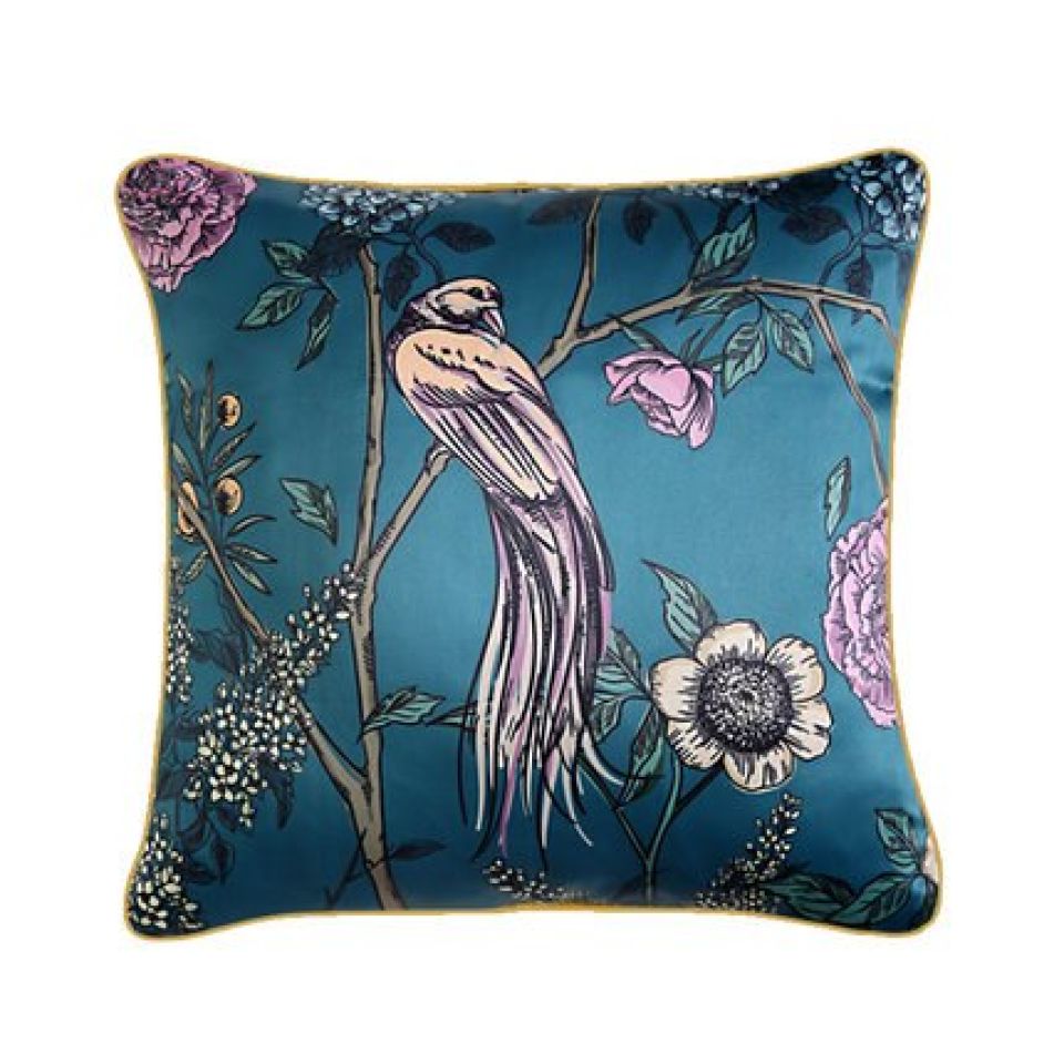 Peacock Blue Bird Cushion Cover