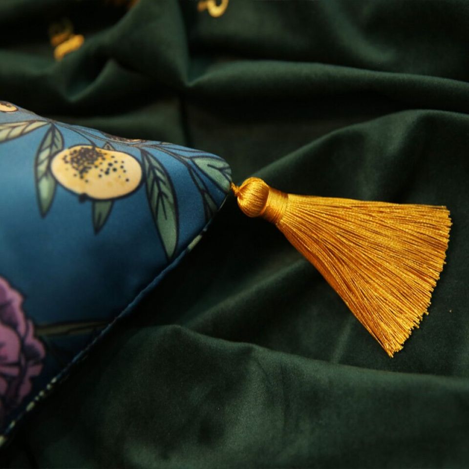 The small tassels on the corners add a fun element to the formal look.