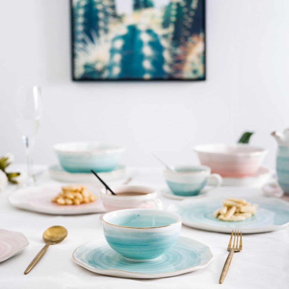 3 reviews for Pink And Blue Gold Lined Ceramic Tableware