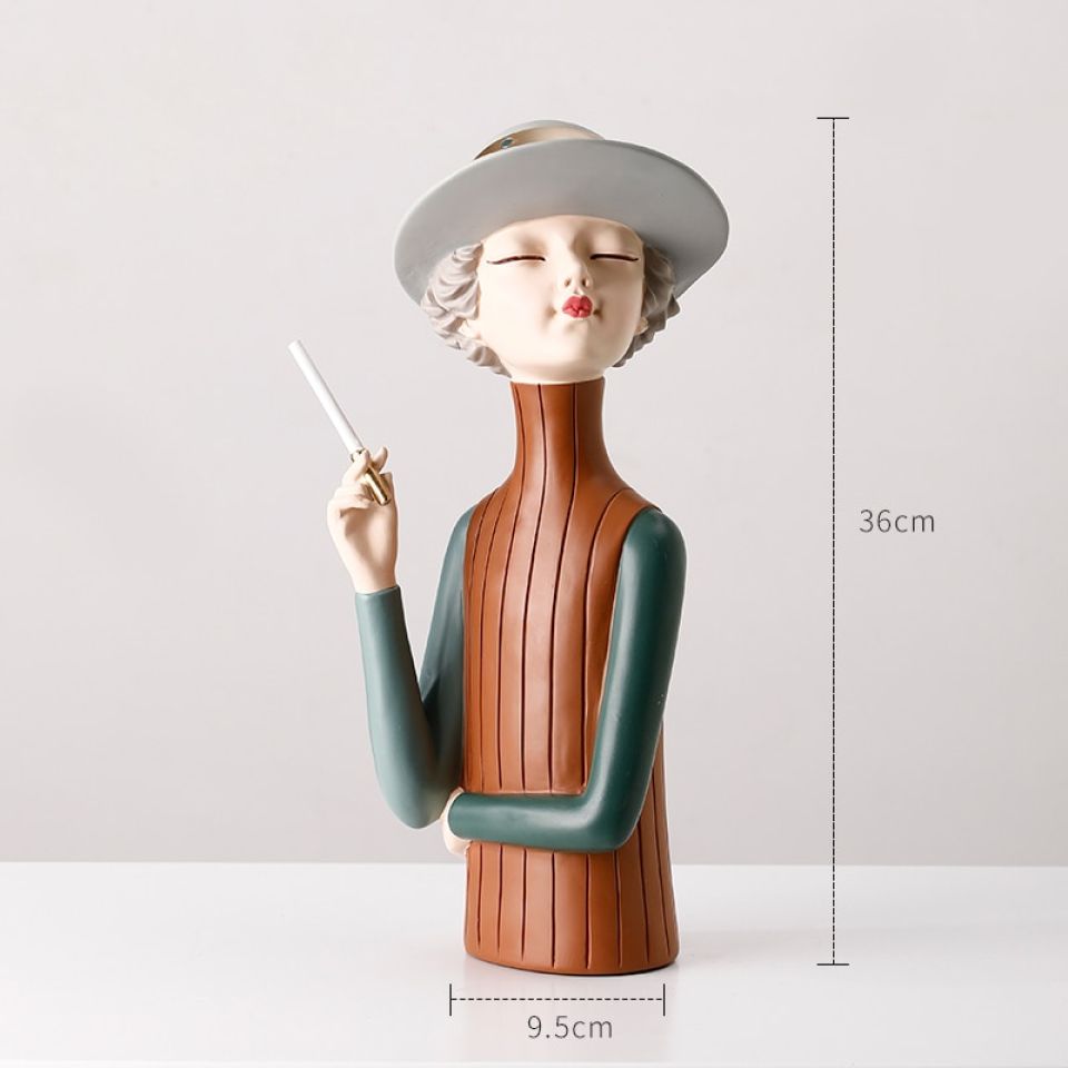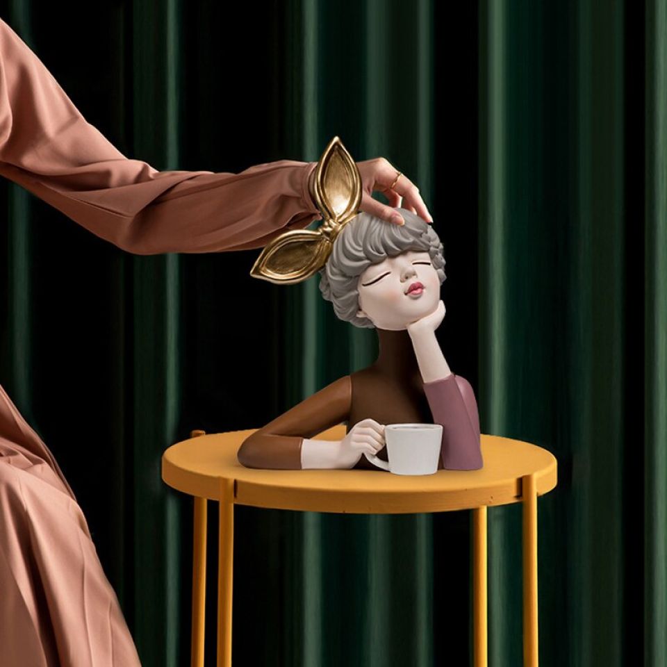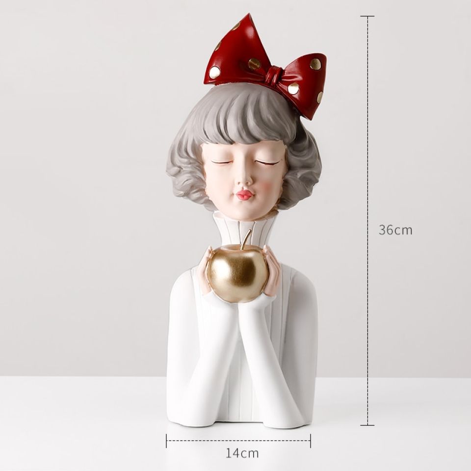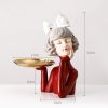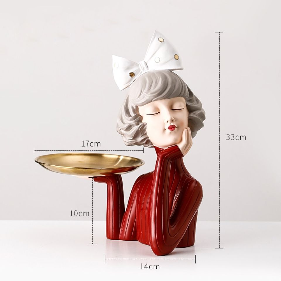 - This functional decor piece features a figurine of a young girl holding a tray.