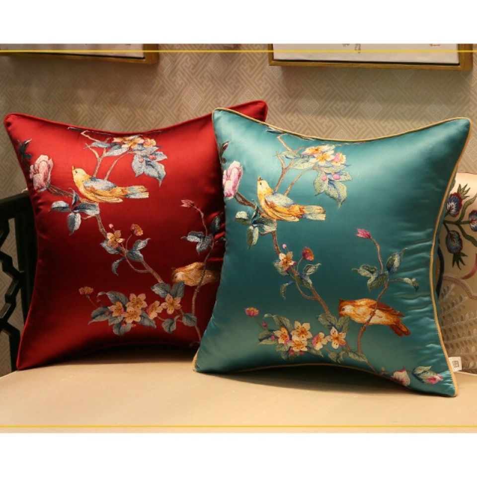 Casa Cultures presents a uniquely designed Satin Finish Birdy Pillow Cover. The flawless embroidery work is commendable and rarely seen. These covers add a royal element to the aura and will invite praise and temptation.