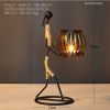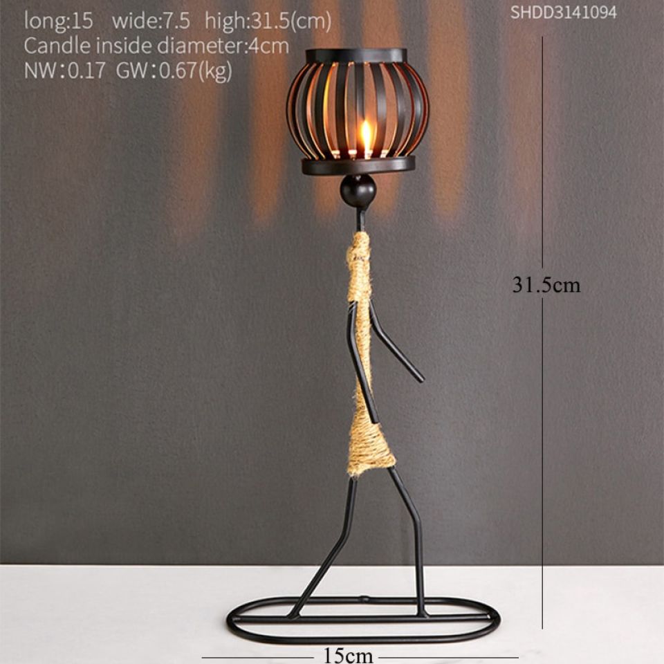 - It features stick figures in tribal attire made of hemp rope holding lamps with slits in which the candles are placed.